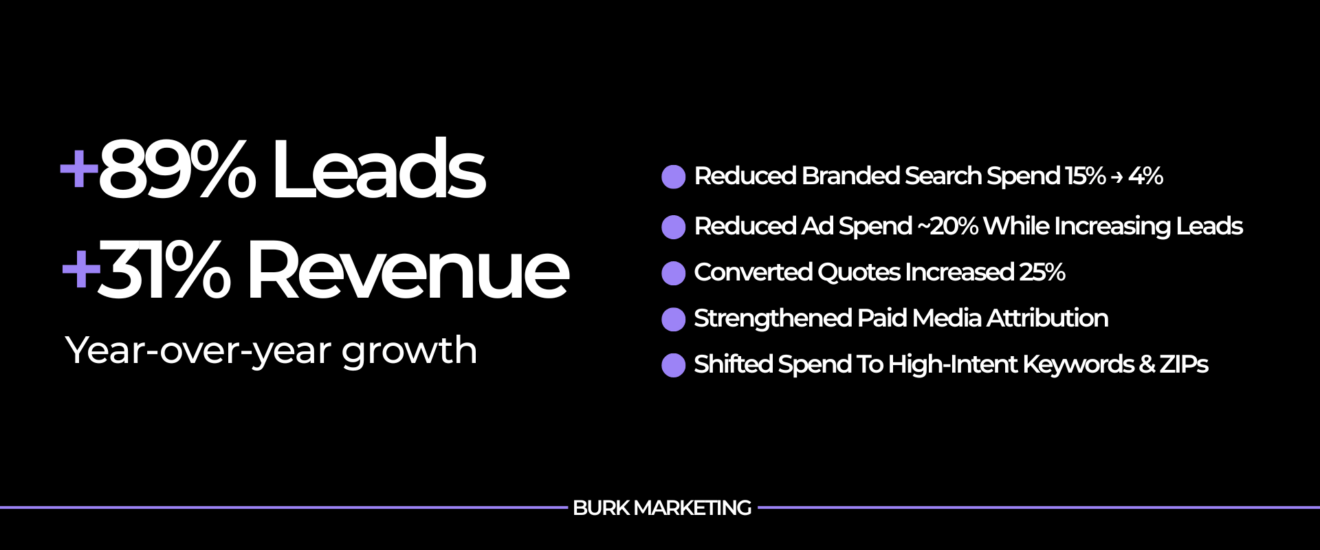 These results reflect improvements across the full marketing system, with paid advertising playing a major role in increasing both lead volume and efficiency.